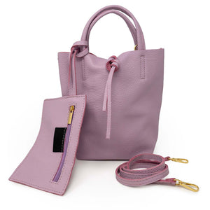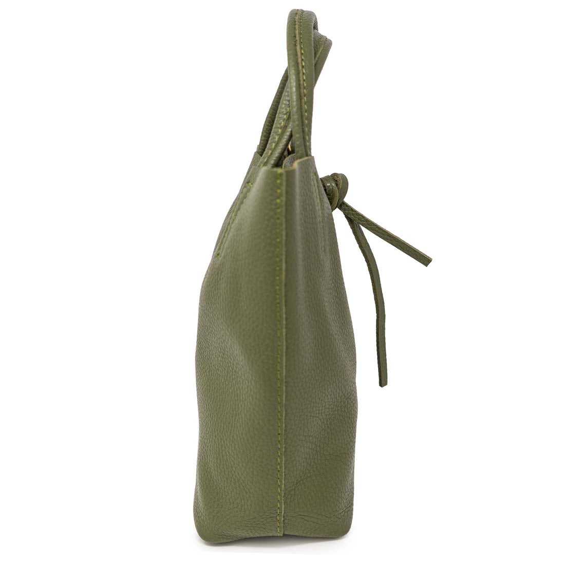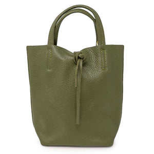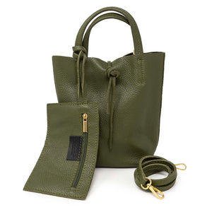 Made in Italy, this handcrafted Italian leather mini tote bag is the perfect everyday bag. This beautiful unstructured leather tote bag comes with a wallet insert, leather tassel to light close the top, and detachable crossbody strap. Perfect for the stylish traveler or use daily on-the-go to easily store everyday items and newly acquired treasures. Comes in two colors: green glitter leather and black glitter leather. Deatchable strap drops 38 in. Box bottom measures 6 x 3.25 in. Bag Measures 9 x 9 in.