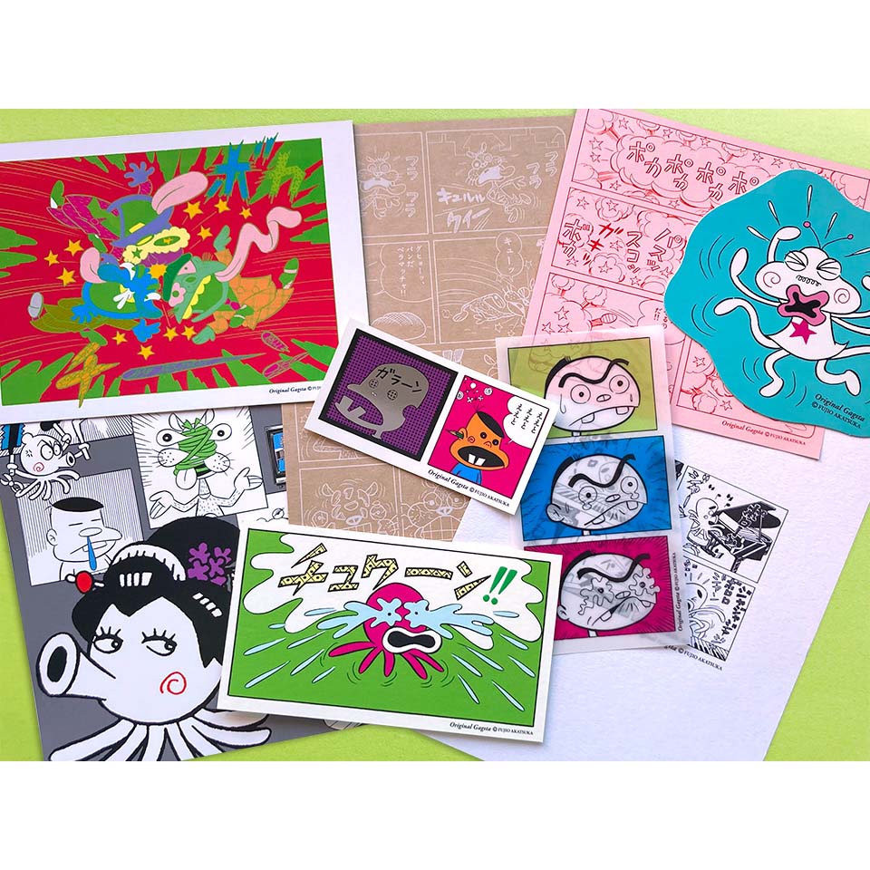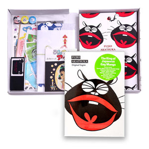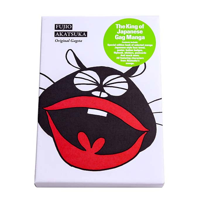 Originally put together for the British Museum’s Mangaexhibition in 2019, Akatsuka Fujo Original Gagsta is the ultimate tribute to one of the founding fathers of gag manga. This limited edition English language boxset includes a book of selected manga currated by Akatsuka’s daughter Akatsuka Reiko along with her essays on her father’s work, a Japanese style face towel, a poster, button badges, flipbook, stickers, postcards and much more – all featuring the memorable characters from Akatsuka’s manga. Made in Japan.