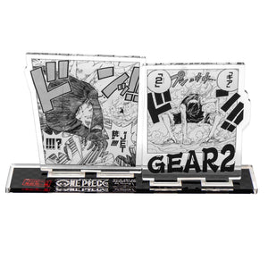 Made to mimic a manga panel from Oda Eiichiro's manga, ONE PIECE, which is is described by both critics and readers as one of the most important manga of all time, this acrylic stand was created exclusively in celebration of Art of Manga, the groundbreaking exhibition organized by the de Young museum located in San Francisco's Golden Gate Park. The perfect keepsake from the exhibition, this acrylic stand shows your fandom. Comes packed flat, pop out components for easy assembly. Made in Japan. Measures  Japan. Measures 6 x 4 in.