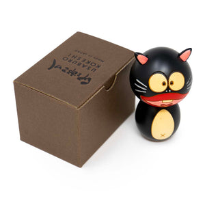 Experience the rich heritage of Japan's kokeshi dolls with this charming doll modeled after an iconic manga character. This 100% wood doll features Unagi-Inu, a polite, laid-back eel-dog who will often use honorifics in his speech from Akatsuka Fujio's iconic manga series Tensai Bakabonwhich is about the misadventures of a dim-witted boy (Bakabon) and his idiotic father, the latter of whom eventually becomes the central character. Handmade with wood from sustainably managed forests, this doll undergoes twenty different processes from carving, to polishing, to painting and finishing. Each and every kokeshi doll is carefully crafted to have the warmth of wood and a gentle expression. To care: do not touch with wet hands, do not store in direct light, or in hot or humid environments, do not place in a location with extreme heat changes, clean with a dry, soft cloth. Made by Usaburo Kokeshi, the largest Kokeshi doll workshop in Japan. Measures approx. 3.5 x 1.75.