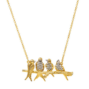 This deceptively simple necklace is just stunning and surprisingly easy to wear. Perfectly weighted and balanced, these vintage 1950s birds on a branch drop from 22ct vermeil chain. This necklace remains dainty and incredibly detailed. Comes complete with a lobster clasp closure. Handmade by Kelley Hollis in her Berkeley, CA studio. Pendant measures 2.5 x 1 in. Measures 18 in. with 2 in. extender.