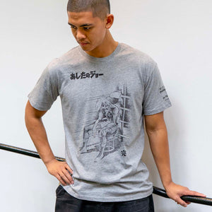Featuring the iconic "Last Scene" from Chiba Tetsuya's legendary manga, Ashita no Joe: Fighting for Tomorrow, a Japanese boxing series about a young street-fighting drifter, this exclusive t-shirt was created in celebration of Art of Manga, the groundbreaking exhibition organized by the de Young museum located in San Francisco's Golden Gate Park. This soft, heather grey t-shirt is perfect keepsake from this momentous exhibition. To care: wash on cold, dry low or hang dry to preserve image. Printed in California. 100% cotton.