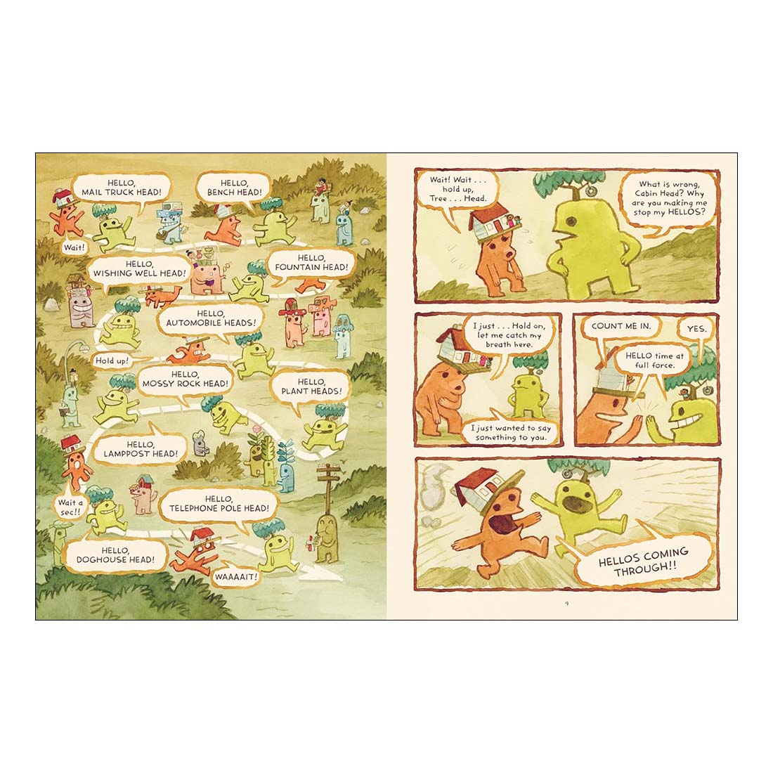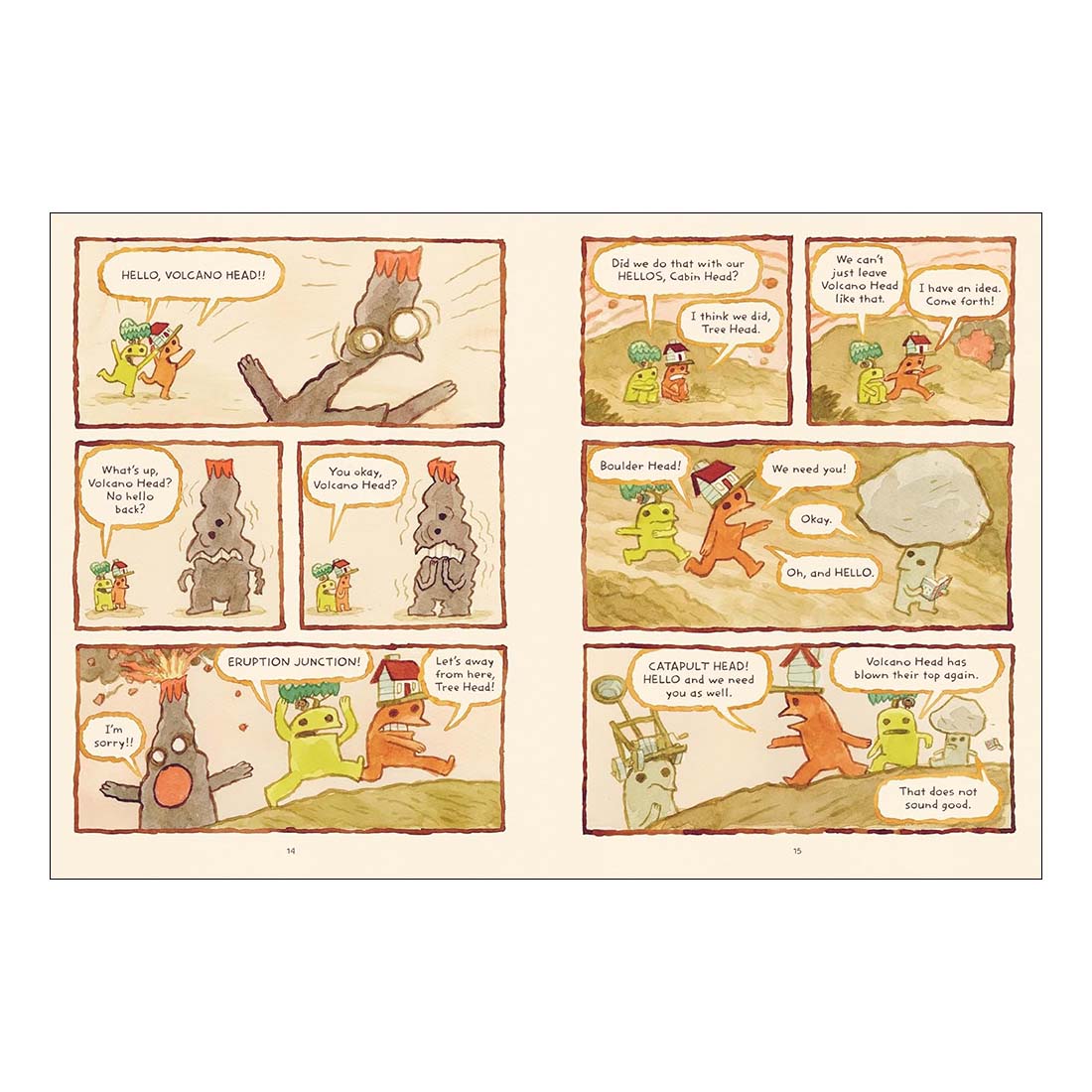 Whether drawing or hiding or just saying HELLO or BYE-BYE, Cabin Head and Tree Head are irresistible buddies who have fun together, support one another's ideas (digging for treasure without a map) and help one another overcome challenges (bad leafcuts!). These are lighthearted tales of two pals who think differently — and entirely embrace it — set in a landscape of equally unforgettable characters such as Automobile Head, Volcano Head and Trash Can Head. Let’s go hang out with all the Heads! Hardcover, 88 pages.