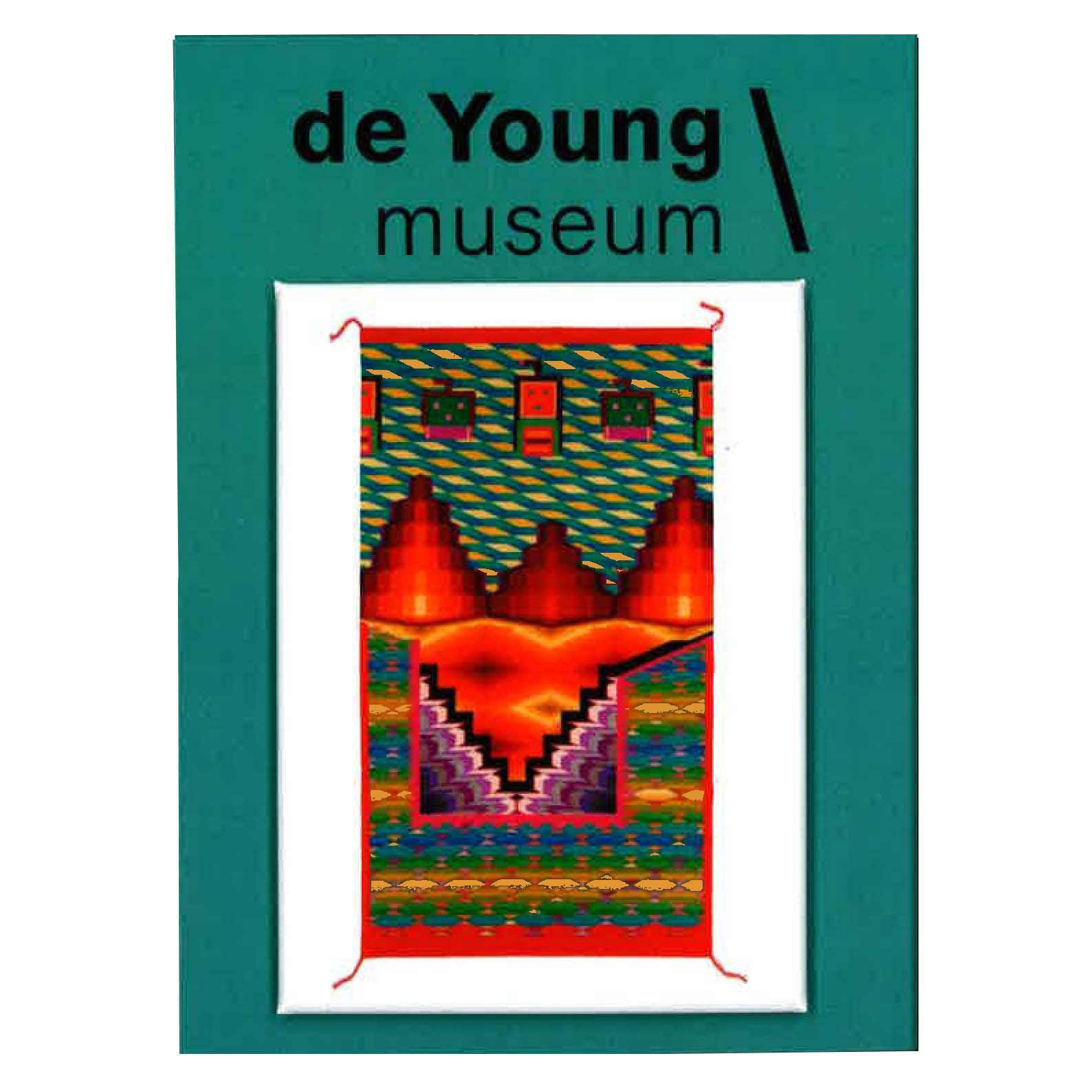A charming keepsake from the restalled galleries at the de Young museum, located in Golden Gate Park in San Francisco, CA,  this magnet features Melissa S. Cody's mixed media textile artwork Sailing the Cosmos, 2024. Measures 3.5 x 2.5 in.