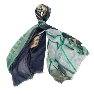 Created on the occasion of the exhibition Manet and Morisot, presented at the Legion of Honor museum, this exclusive scarf features Edouard Manet's painting, The Balcony, 1868-1869. Made of micromodal, this silky soft light weight scarf comes complete with fringe. Hand wash cold, lay flat to dry. Cool iron is needed. Made in the India. Measures 40 x 60 in.