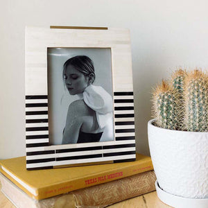 Mukhendu Stripe 5x7 Black & White Bone Picture Frame