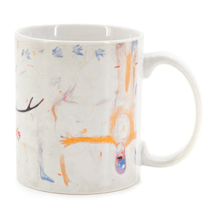 This mug features The Magical Mind in Rural America, 2015, a painting in the permanent collection of the de Young museum by Rick Bartow, a member of the Mad River band of the Wiyot Tribe, who are indigenous to Humboldt County, California. This glazed ceramic mug is the perfect way to start your day. Hand washing is recommended to preserve the image. Holds 12 oz.