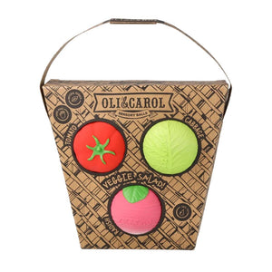 The Veggie Salad set brings a fun twist to sensory play with three mini balls: our best-selling radish, a vibrant tomato, and a crisp cabbage. These baby teething toys support early development, rolling movements, and chewing relief. Crafted from eco-friendly, non-toxic materials, they make the perfect natural baby gift.