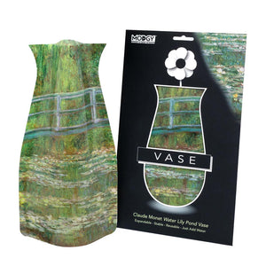 Inspired by Claude Monet's artwork, Water Lily Pond, this expandable flower vase does everything a glass vase does except collect dust, chip or break. This plastic vase is durable and stable enough to hold a flower bouquet. This decorative vase is ideal for events, weddings, and any table top. Crafted from BPA free plastic. Measures 10.25 x 6.25.