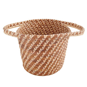 Spruce up your home decor with the Large Planter Basket. Highlighting expert use of natural materials, this artisan-made basket is handcrafted from coiled pine needles and elegantly stitched with raffia. Featuring useful handles and warm earth tones, this basket is practical and versatile. Large enough to use for storage, or the perfect holder for your favorite houseplant. Fair-trade. Measures 6 x 7 in.