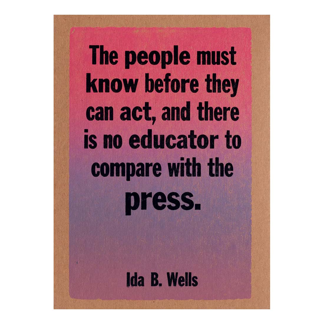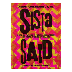 This freshly commissioned set of postcards from the Detroit-based letterpress printer Amos Paul Kennedy, Jr. (born 1950) highlights the voices of women of color in the Black arts and social justice movements, including Ida B. Wells, Zora Neale Hurston, Pauli Murray, Lucy Parsons and others. Sista Said features 40 postcards with 20 inspiring quotes in a keepsake box. Each card measures 8.25 x 6.25 in.