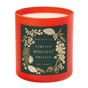 This charming holiday candle brings to mind memories of cozy nights by the fire, fresh balsam fir trimmings, and boughs of cranberries dipped in frost. The 9.5oz soy wax candle comes in a painted glass vessel and is packaged in a decorative gift box with gold foil accents with notes of cranberry, balsam fir, and cedarwood. Poured in the USA. Holds 9.5 oz. Approx: 40 hour burn time.