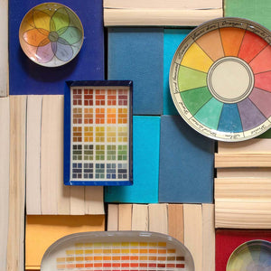 This charming enamel serving tray showcases a vintage color wheel design originally created in 1708. Inspired by Claude Boutet’s cercle chromatique, one of the earliest color wheels, it displays a balanced blend of primary, secondary, and tertiary hues—an important milestone in colour theory. Food safe and perfectly sized for snacks, drinks, or small items, it combines practicality with elegant decoration, perfect for entertaining or brightening your space. Measures 8 in.