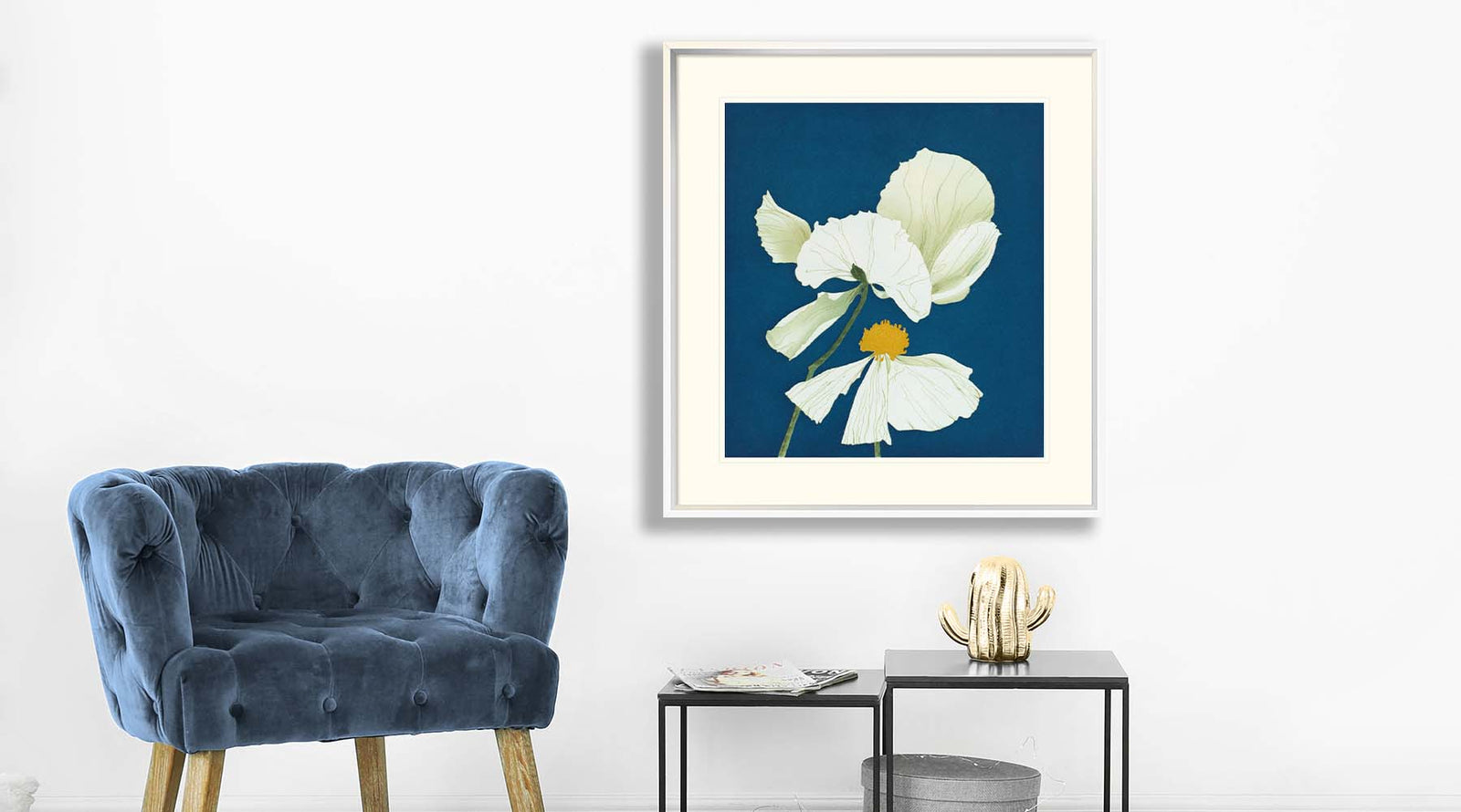 Featuring the artist's ethereal botanical print Matilija Poppy.