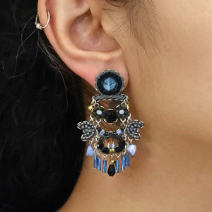 Charming ensemble earrings featuring woven textile elements, beads and semi-precious stones. Handmade and designed by Ayala Bar. Her innovative styles blend natural elements, beads, stones and glass with assorted metals and fabrics. Combining beads and soft tassels with jagged surfaces; matte textures with shiny metals. The possibilities are boundless. All items are one-of-a-kind as they are hand made and will differ slightly. All jewelry is nickel and lead free. Gently clean the jewelry with a soft, dry cloth. Do not wash it with water or use cleaning agents. Measures 2.14 in.