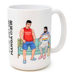This exclusive glazed ceramic mug featuring Tagame's Tomorrow was created in celebration of the The Art of Manga exhibition, on view from September 27, 2025 through January 25, 2026 at the de Young museum located in Golden Gate Park in San Francisco, CA. Holds 15 oz. Measures 4.5 x 3.25 in.
