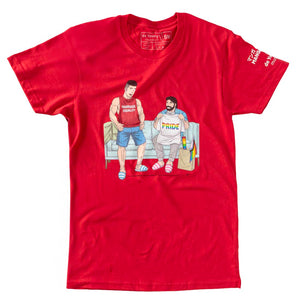 The de Young Museum Store has commissioned renowned manga artist Tagame Gengoroh to create an original drawing in celebration of the exhibition and San Francisco Pride. Best known for his contributions to gay erotic manga, Tagame’s work explores themes of love between men, identity, and the challenges of coming out. The commissioned artwork, titled Tomorrow, features two men wearing and holding shirts with “Marriage Equality” and “PRIDE” messages, alongside the LGBTQ+ flag.