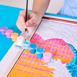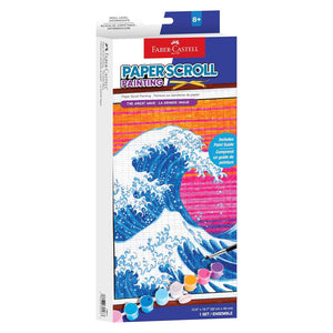 Create a stunning work of art with the Faber-Castell The Great Wave Scroll Painting Kit! Perfect for kids ages 8+ and adult beginners, this mindful art activity combines creativity, relaxation, and cultural appreciation in one—making it an excellent choice for kids who love imaginative crafts and hands-on projects. The complete kit includes a bamboo-style paper scroll preprinted with a detailed Great Wave outline, 8 acrylic paints (0.17 fl oz / 5ml each), a versatile paintbrush, a protective drop cloth, and instructions with a helpful color guide. Each acrylic paint features rich pigmentation for smooth coverage, blending, and layering, making it easy to paint vibrant skies, foamy crests, and powerful ocean waves. Inspired by traditional Japanese art, this scroll paint set for kids ages 8-12+ encourages focus, patience, and self-expression while letting artists of all skill levels bring an iconic masterpiece to life. Once finished, the scroll transforms into a meaningful keepsake—ready to hang as wall décor, display in a creative space, or share as a thoughtful handmade gift. This set is also a wonderful option for painting kits for kids, a beginner-friendly paint kit for kids, DIY projects, and even crafts for girls 8-12+. Unlike a structured paint by numbers kit for kids, this open-ended project invites creativity and personal expression. Because it is screen-free, engaging, and easy to complete, The Great Wave Scroll Painting Kit is equally well-suited for after-school enrichment, quiet mindful breaks, or relaxing weekend kids activities. More than just a painting kit, it gives children and adults alike the chance to explore art techniques, build patience, and celebrate the timeless beauty of Japanese culture through creative design. Since 1761, Faber-Castell has proudly crafted premium art supplies trusted worldwide by artists of all ages and skill levels. Ages 8 and up. Measures 1 x 5.63 x 13.75 in.